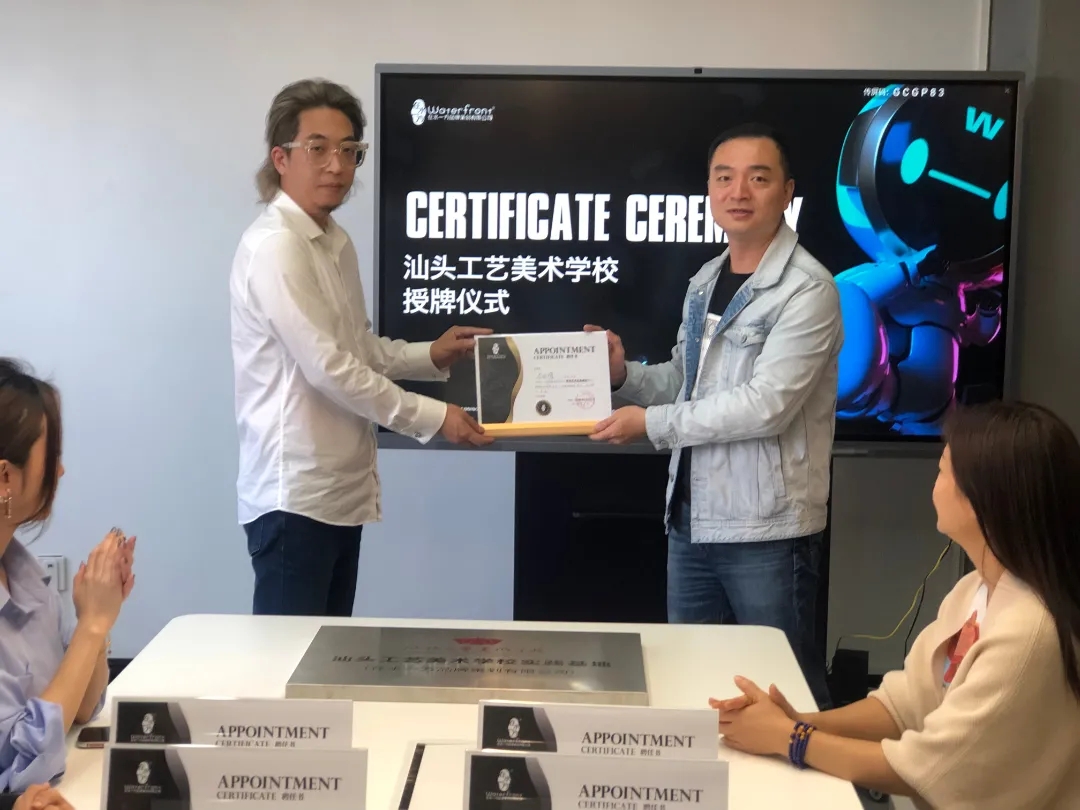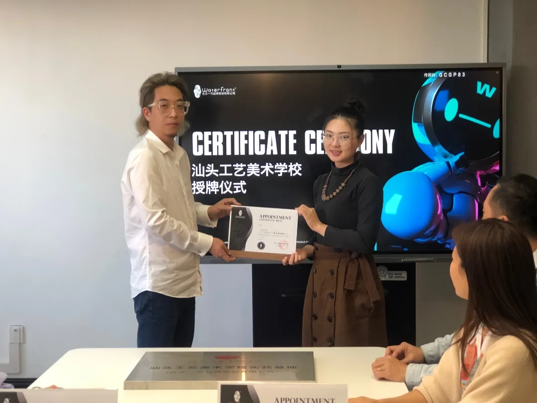 在水一方品牌策劃公司正式掛牌“汕頭工藝美術(shù)學(xué)校實(shí)踐基地”,汕頭工藝美術(shù)學(xué)校正式掛牌“汕頭在水一方品牌策劃有限公司人才孵化基地”,對(duì)合作雙方意義非凡。